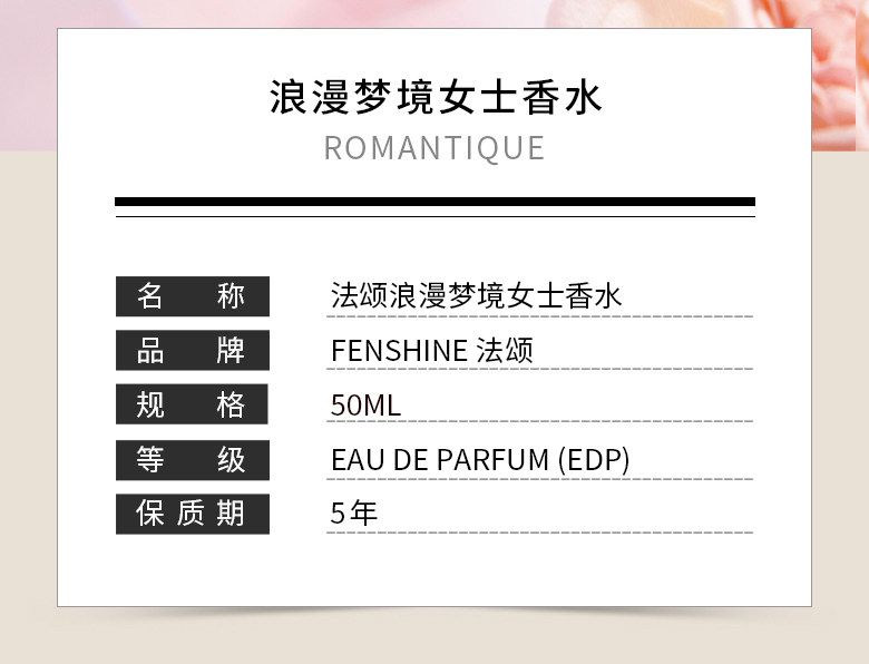 官方正品FENSHINE法頌浪漫夢境女士香水淡香留香女生生日禮物